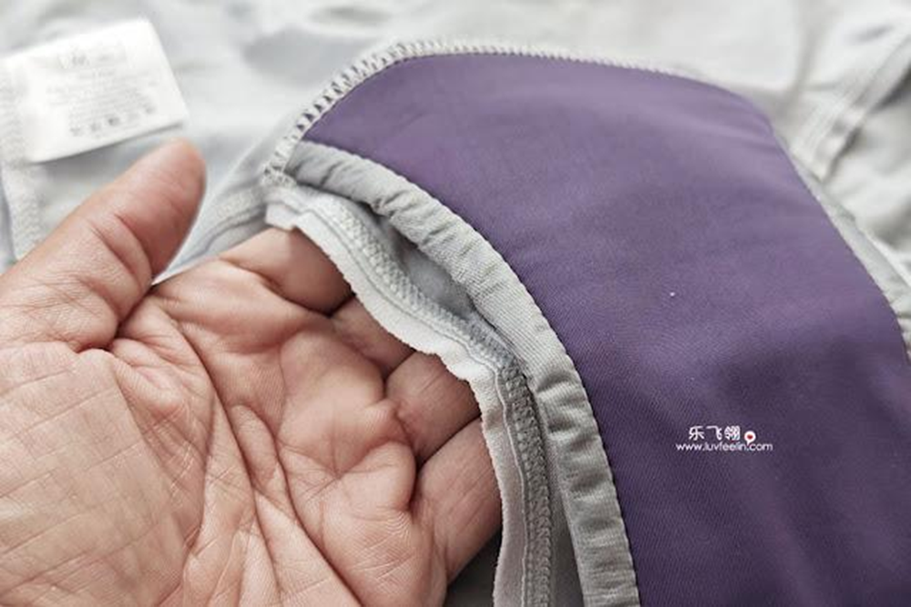 布料偏柔软舒适,扇形设计贴合臀型,不易移位。吸收量最多为 6 个普通卫生棉 (Sanitary Pad),适合平时经期量大、白天常常要换卫生棉的情况。我登山时穿的就是这款,量多的时候也不担心,一整天干干爽爽!
